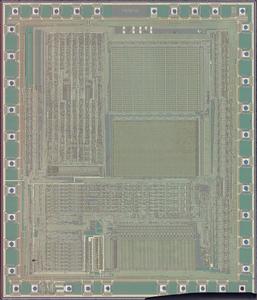 A 8-bit microcontroller with 4K ROM and 256B RAM on the die.