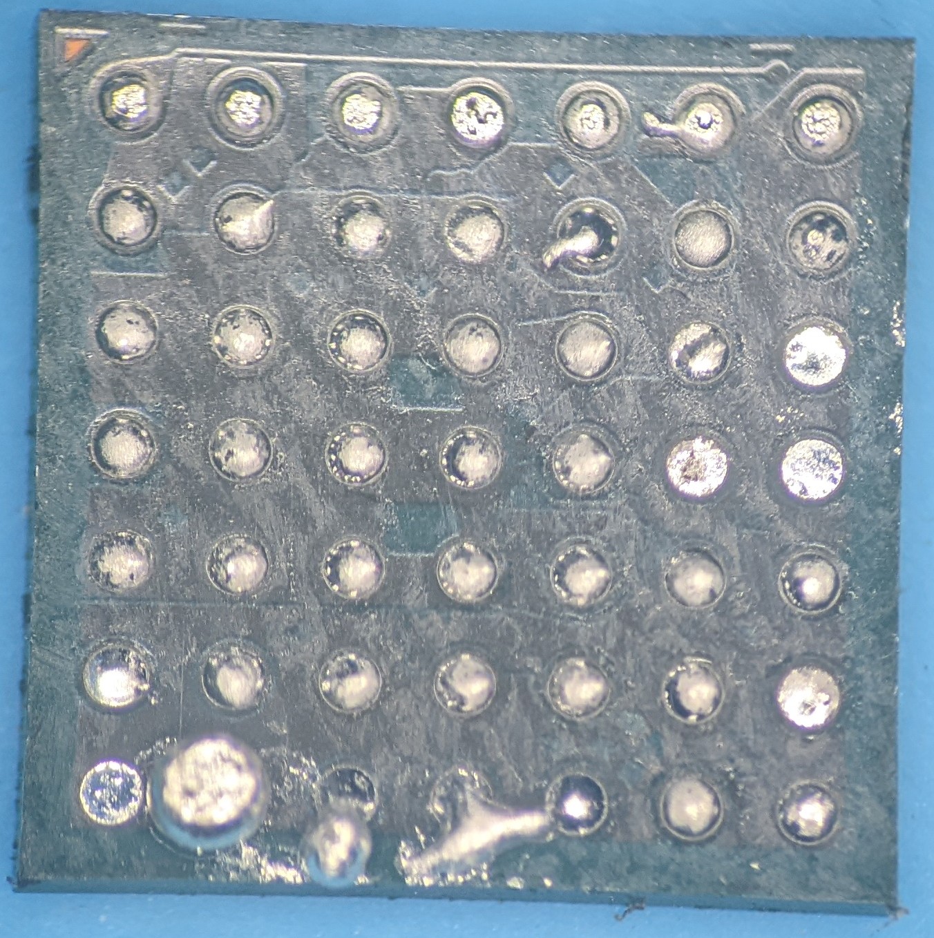 Experimental solder ball removal using Chip Quick. Needed to soak a bit longer and also clean the flux off better.